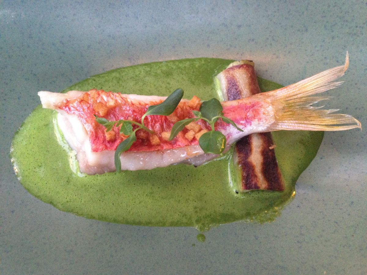 20160730 – JYs – 38 Published August 1, 2016 at 3264 × 2448 Red mullet cooked whole, cannelloni brocoletis and chervil juice