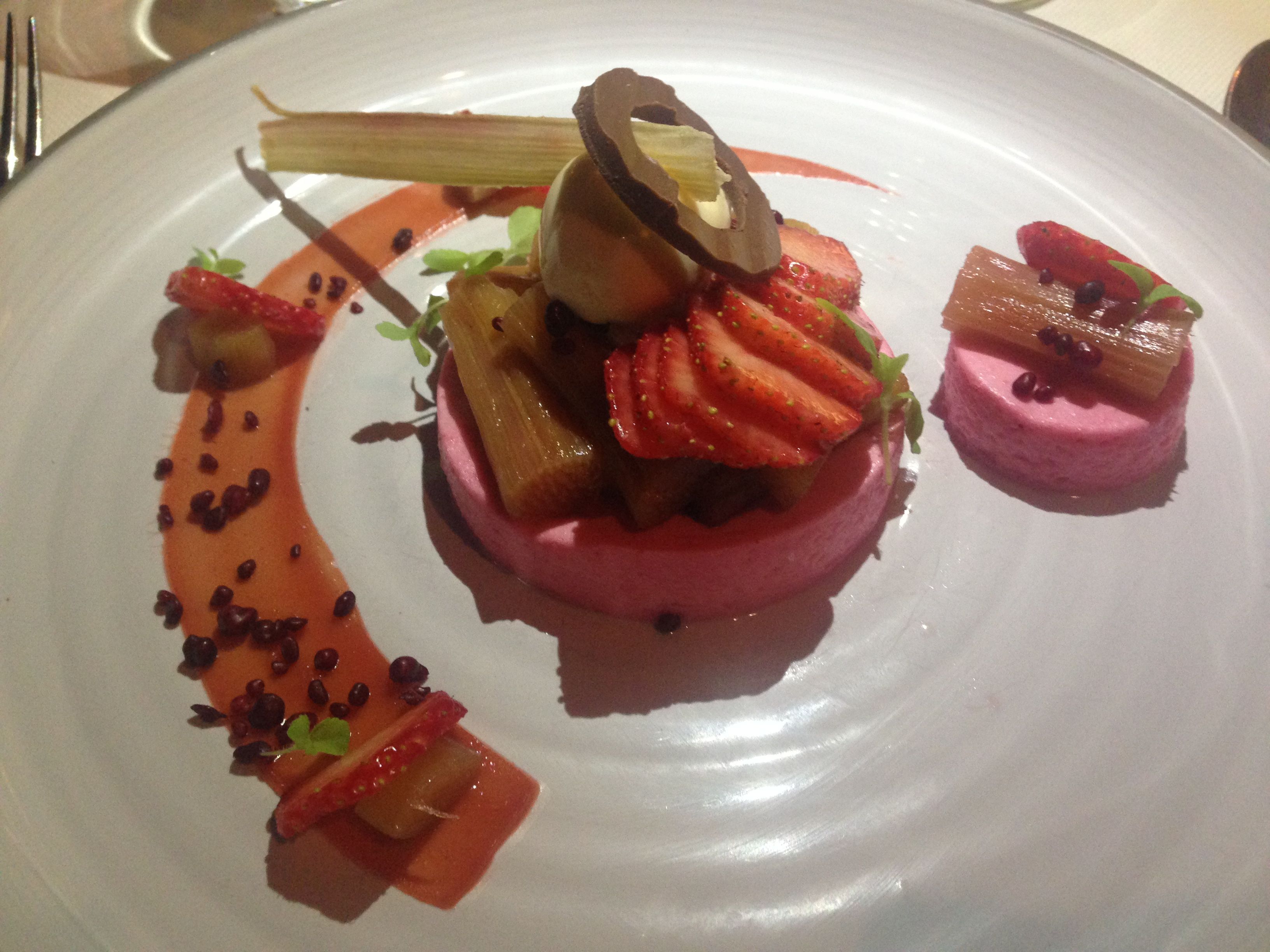Rhubarb bavarois with ginger ice cream