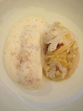 20160806 – Stucki – 32 Published August 7, 2016 at 2448 × 3264 Halibut with ginger butter, cauliflower and white poppy seed @ Stucki Basel