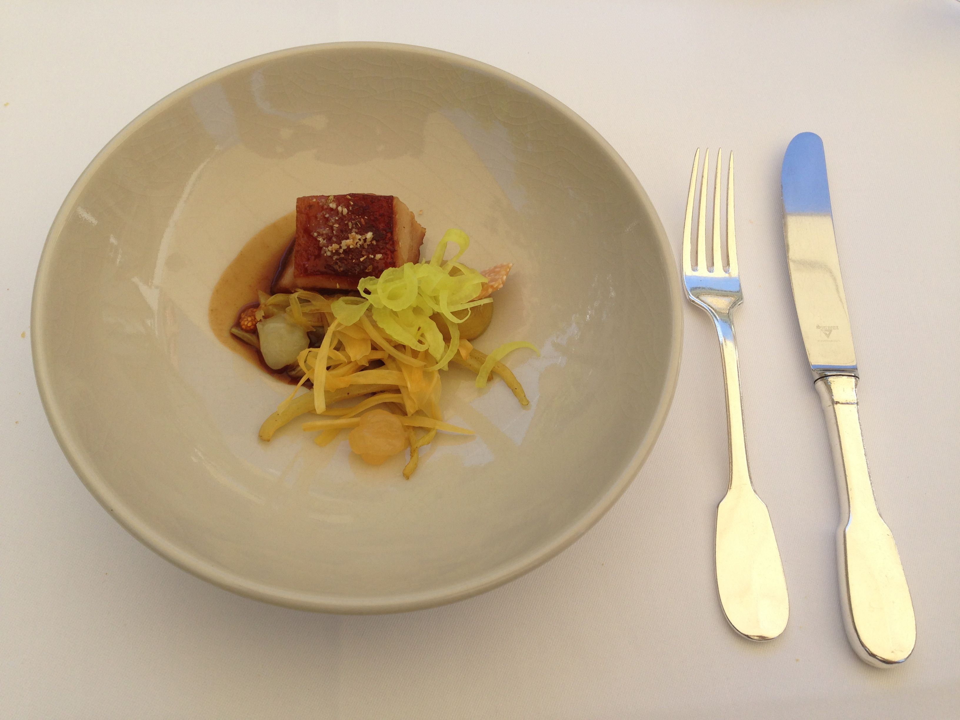 20160806 – Stucki – 47 Published August 7, 2016 at 3264 × 2448 Pork belly with cumin honey, fennel and false flax seeds @ Stucki Basel