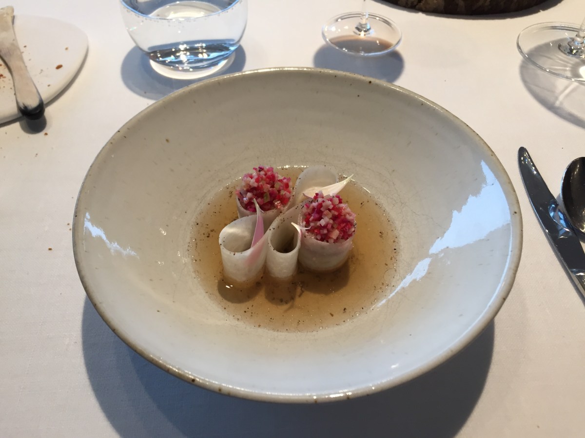 img_1680 Published January 8, 2017 at 3264 × 2448 Duck liver, winter radish and smoked eel @ Hertog Jan, Zedelgem, BE (10th of Dec16)